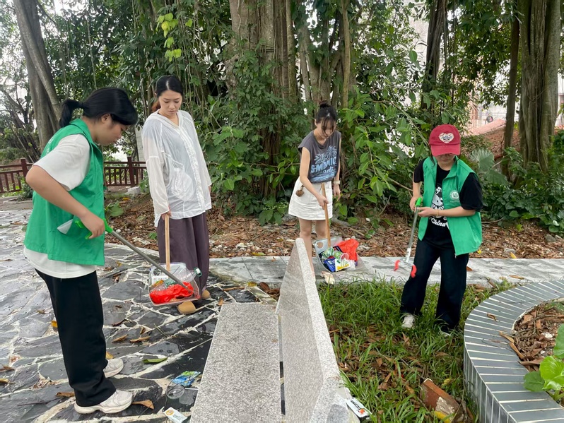 随后,在老师带领下,队员们拿起扫帚、夹子等工具,开启卫生清洁行动。清扫前,公园内落叶堆积、垃圾散落;清扫后,路面整洁、环境焕新。一尘一土的改变里,是青年学子用汗水书写的担当,让古榕公园的古韵,与青春活力交融共绽。
