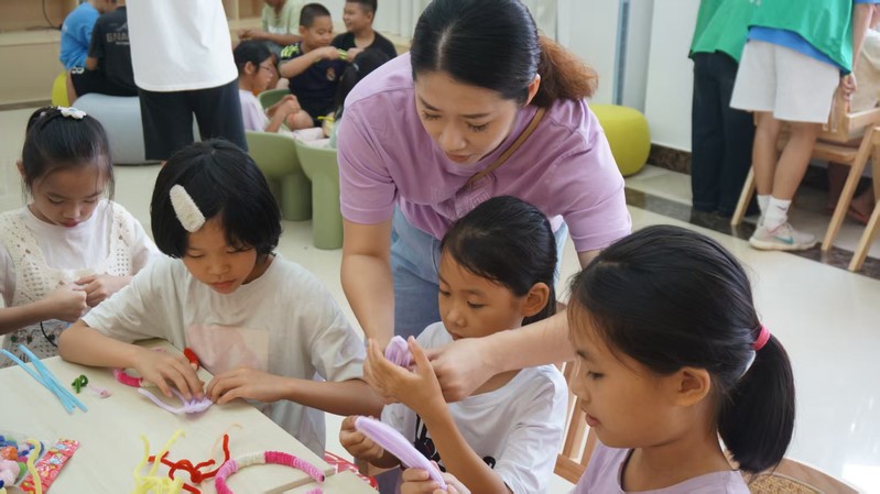 一扭一缠间,在突击队队员的耐心指导下,彩色的扭扭棒在孩子们的小手中仿佛被注入了魔力。有的被拗成灵动的蝴蝶,轻轻别在发簪上;有的编作小巧的花朵,瓣尖微微翘起,藏着孩子们独有的巧思。孩子们专注的眼神里闪烁着对艺术的向往,指尖的灵动与心中的创意碰撞出奇妙的火花,在亲手实践中感受手工艺术的魅力,用童心编织着属于自己的文化梦想。